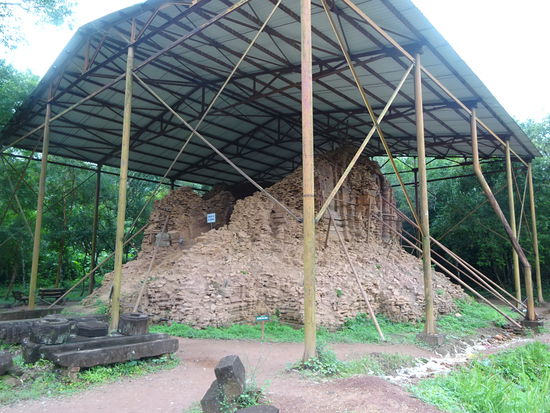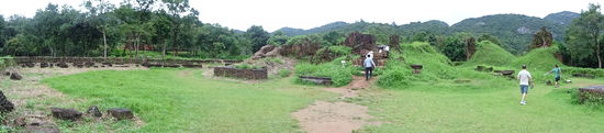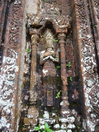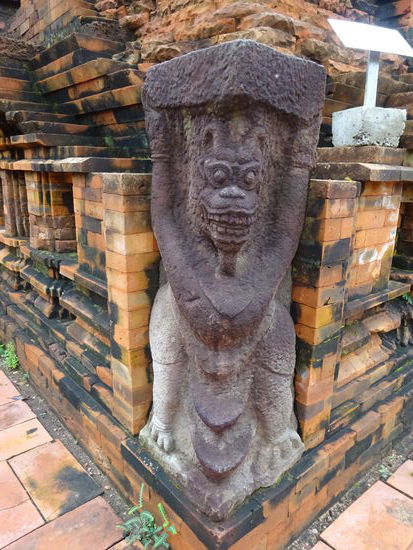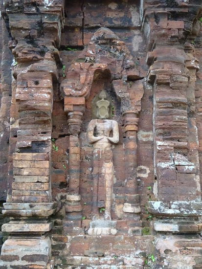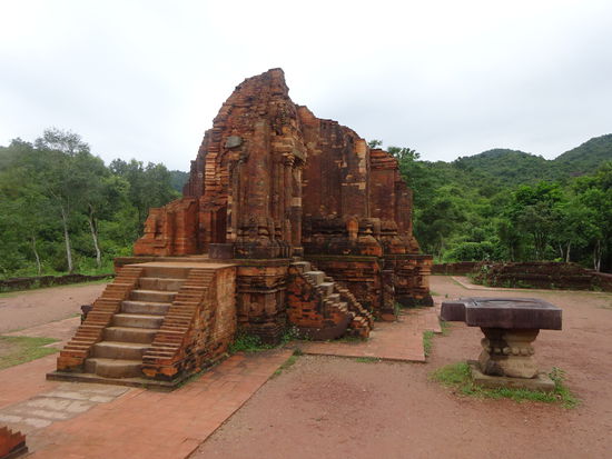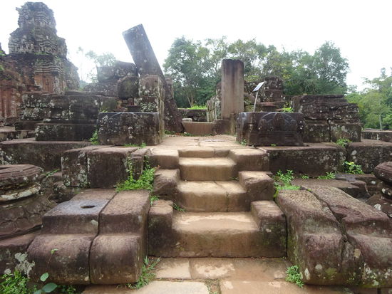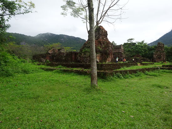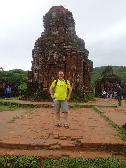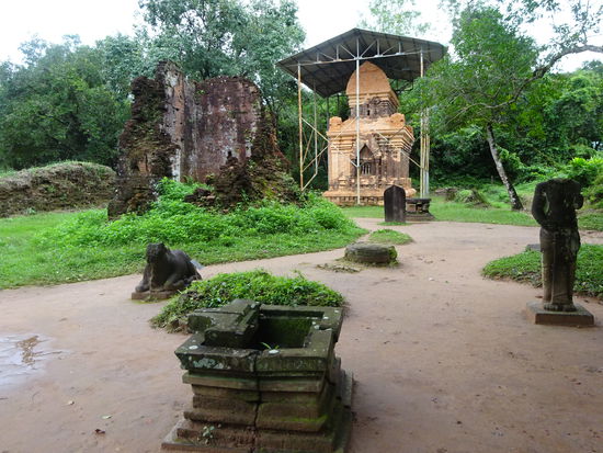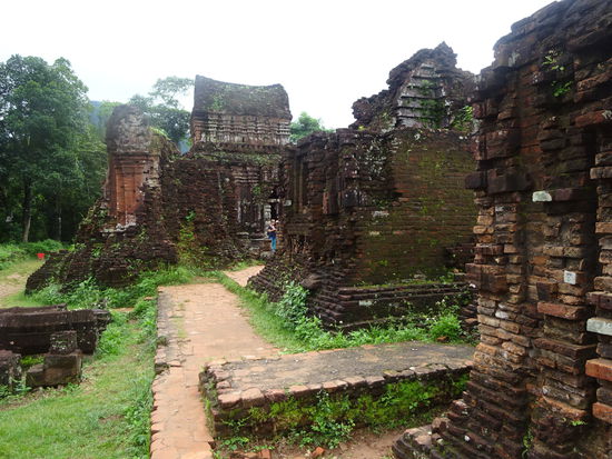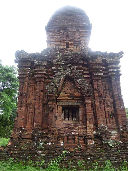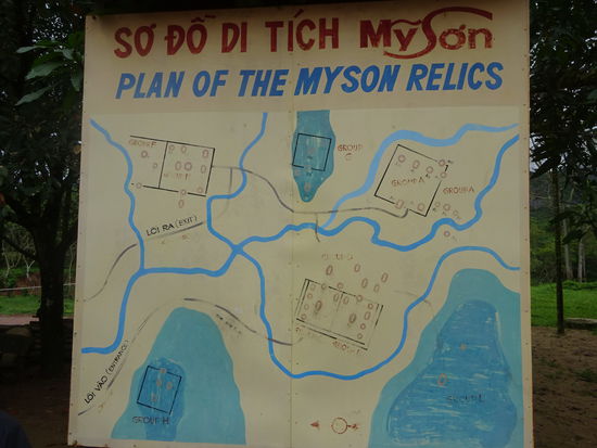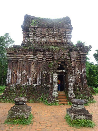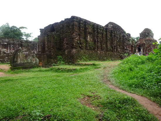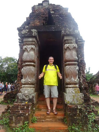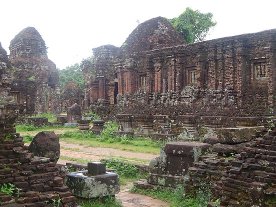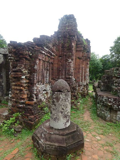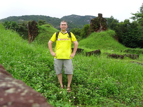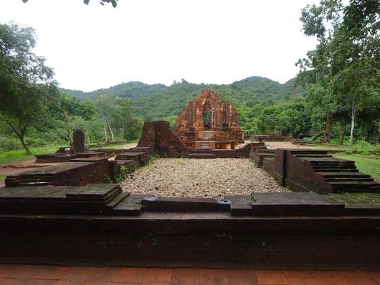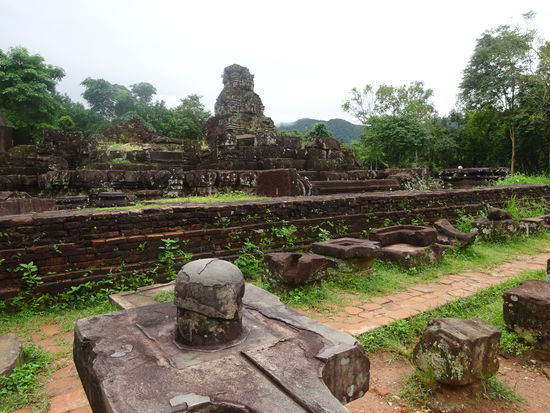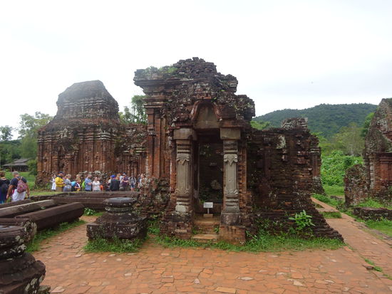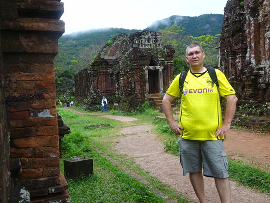 Am 3. und letzten Tag in Hoi An scheint zum ersten mal die Sonne und heute habe ich einen Ausflug mit dem Touribus in die heiligste Stätte der Cham Kultur nach My Son unternommen. Unweit der alten Hauptstadt des Champa Reiches Tra Kieu entstanden hier ab den 2. Jh. erst Holzgebäude und ab den 7. Jh. immer mehr Tempel aus Ziegelsteinen. Auf dem Höhepunkt des Champa Königreiches im 10. Jh. erreichten die Bauaktivitäten ihren Zenit. Bis zum 13. Jh. entstanden die letzten Tempel bevor die Stadt aufgegeben und vom Dschungel überwuchert wurde. Ende des 19. Jh. stießen französische Truppen auf das Gelände und kurze Zeit später wurde das Gelände vor allem durch den Archäologe Henrie Permentier näher erforscht und katalogisiert. Durch seine Zeichnungen & Skizzen weiß man das hier Anfang des 20. Jh. noch mehr als 70 Tempel standen von den die meisten aber leider bei Bombenangiffen durch die Amerikaner während des Vietnamkrieges schwer beschädigt oder ganz zerstört wurden. Da aus dieser Zeit immer noch viel Munition und Bomben in der Umgebung liegen sollte man nicht all zu weit von den vorgegebenen Wegen abweichen. In den letzten Jahren hat man sich viel Mühe gegeben um zumindest ein Teil dieser Gebäude wieder herzustellen aber es gibt noch sehr viel zu tun. Aber auch heute kann man an einigen Tempeln immer noch die Einflüsse aus der indischen Hindukultur erkennen u.a. mit dem Gott Shiva . Die Lage mitten im saftig grünen Dchungel ist ein Traum. Seit 1999 gehört My Son zum UNESCO WELTKULTURERBE.