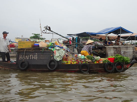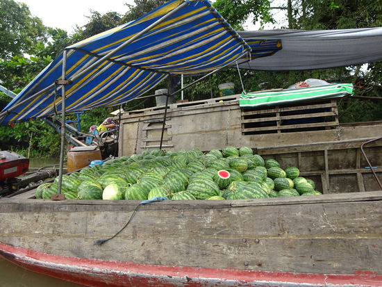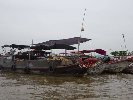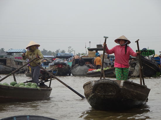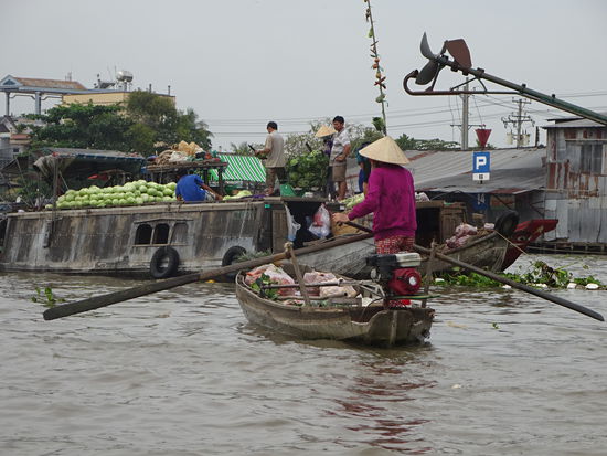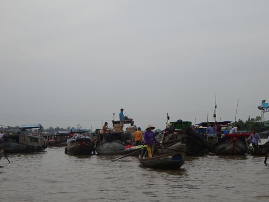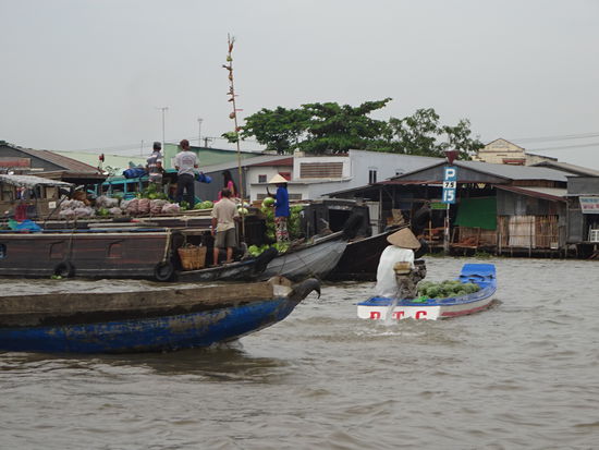 Schwimmender Markt von Cai Rang wobei der ganz große Trubel schon wieder vorbei ist denn dazu hätte ich schon um 5 Uhr aufstehen müssen