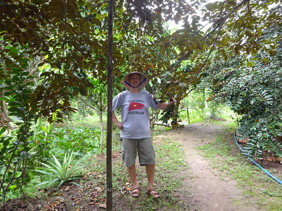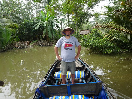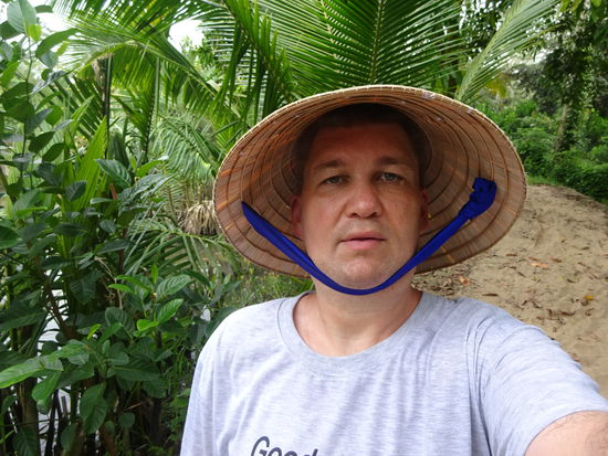 Ich beim Sparziergang durch die Landschaft des Mekong Deltas
