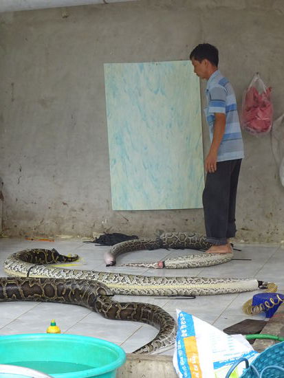 Die Häute der Schlangen werden für den Bootsbau verwendet