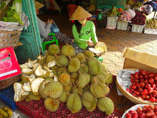 Für 20000 VND = 0,80 Euro deckte ich mich hier auf dem Markt wieder mit der leckeren Durian Frucht ein