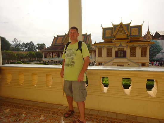Ich am Ufer des Tonle Sap in Phnom Penh gegenüber vom Königspalast