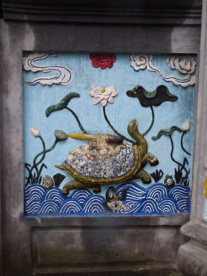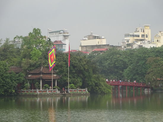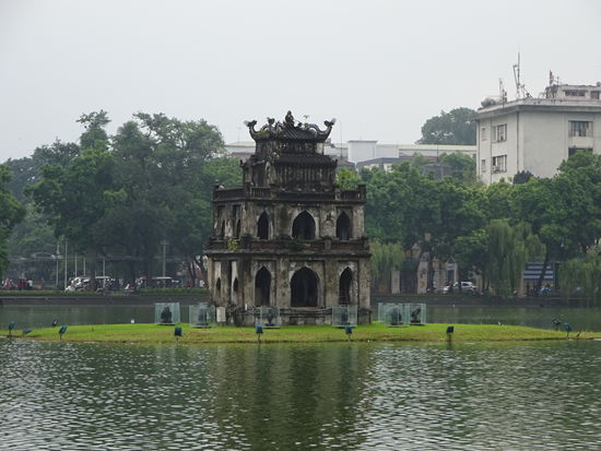 Zwischen französischen Viertel & Altstadt liegt der Hoan Kiem See der von den Bewohnern Hanois auch die Seele der Stadt genannt wird. In dem See soll auch heute noch mindestens eine heilige Schildkröte leben die man aber nur selten zu Gesicht bekommen soll. Ich habe sie jedenfalls nicht gesehen. Ein Exemplar der Weichpanzer - Schildkröten von denen es weltweit wohl nur noch 4 Stück geben soll u.a. 2 Stück in China ist im Jadetempel direkt am See zu besichtigen. Das Tier wurde 1968 im See gefunden , ist 250 Kg schwer und soll 400 Jahre alt sein . Zu Ehren der Tiere wurde vor vielen Jahren auch der dreistöckige Schildkröten - Pavillon auf einer kleinen Insel im See errichtet. Er ist ein bekanntes Wahrzeichen der Stadt.