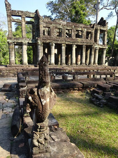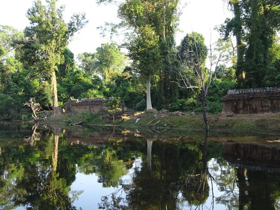See am Ausgang des buddhistischen Tempel Preah Khan in Angkor aus dem 12. Jh.