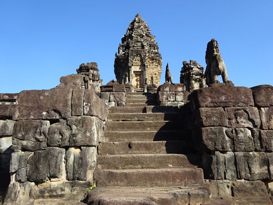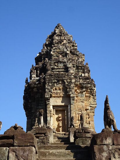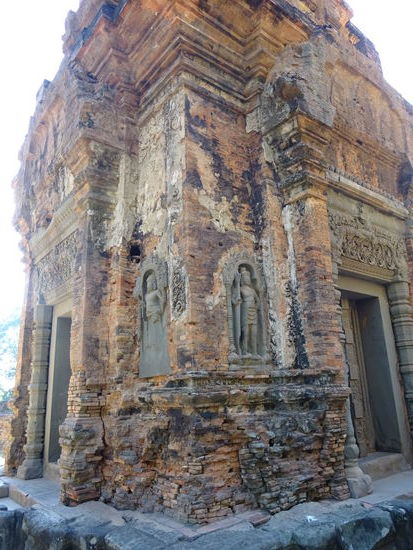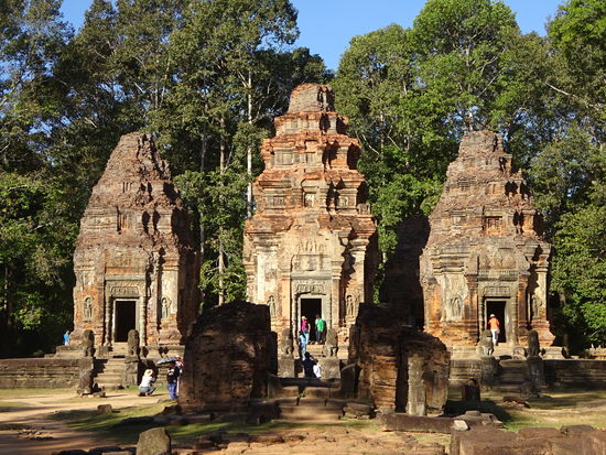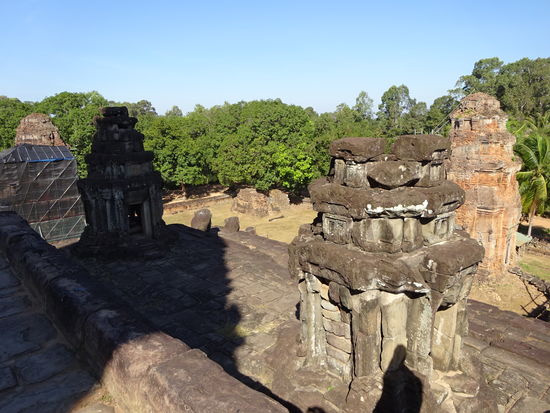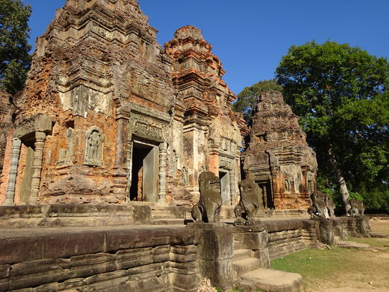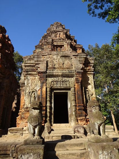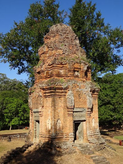 Die Tempel der Roluos Gruppe stehen 12 km östlich von Siem Reap etwas abseits von den Tempeln in Angkor. Zu dieser Gruppe die alle aus dem 9. Jh. stammen und zur ehemaligen Hauptstadt Hariharalaya des gerade geschaffenen Khmer Reichs von König Jayavarman II. gehören zählen der Prei Montí , der Trapéang Phong , der Lolei , der Bakong und der Preah Koh Tempel. Die letzten 3 habe ich auch besucht wobei der Bakong sicher der bedeutendste ist denn er war der erste große Staatstempel im Khmer Reich und Vorbild für viele große Tempelanlagen besonders für die in Angkor .