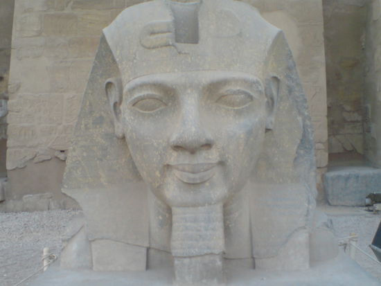 folgenden Jahrhunderten erweiterten Tutunchamun, Ramses und Alexander der Große das Bauwerk. Ein schlanker Obelisk, bis obenhin mit ägyptischen Hyrogliefen verziert, ragt vor dem Eingang in den blauen Himmel. Die Sphingenalle stellte einst eine Verbindung zwischen Luxor- und Carnactempel dar. Sie soll in den nächsten Jahren wieder hergestellt werden. Dazu müssen einige Bewohner ihre Häuser verlassen und werden umgesiedelt. Große Kollosalstatuen von Ramses II stehen vor dem 24 Meter hohen Pylon, der mit Szenen der Heldentaten des Pharao verziert ist. Mächtige Säulen umgeben den großen Hof des Ramses II und weitere Bilder zeugen von seinem Heldentum. An der Ostseite des Tempels befindet sich die Moschee "Abu el Haggag, die die Araber im 14.Jh. ihrem gleichnamigen Ortsheiligen widmeten. Ein stattlicher Mann mit dichtem, dunklem Bart und langer schwarzer Kutte schländert lässig durch das Tempelgelände. Eine lange Kette mit einem großen Kreuz gibt ihn eindeutig als Christ zu erkennen. Wahrscheinlich handelt es sich um einen koptischen Geistlichen. Eine Gruppe Jugendlicher ist da, die vielen hübschen Mädchen sind alle unverhüllt. Ich denke, daß sie zu einer christlichen Jugendgruppe oder Schulklasse aus dem Norden des Landes gehören und der Pater ihr Aufpasser is