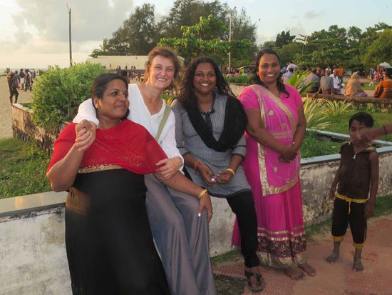 Der Spass ist groß und das Vergnügen billig. Parallel zum Strand geht die Strasse, dort gibt es eine kleine Parkanlage mit Eisbuden und Nussverkäufern. Am Strand verkaufen Kinder kleine Windräder und Drachen. Alle Leute sind gut gelaunt und wir werden ständig zum Selfy dazu gebeten, wir sind das exotische Erinnerungsstück des Tages. "Hello, whazz you name" hören wir ständig und nicht nur von den Kindern.
