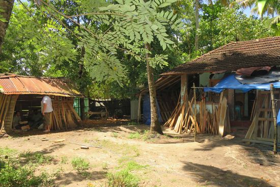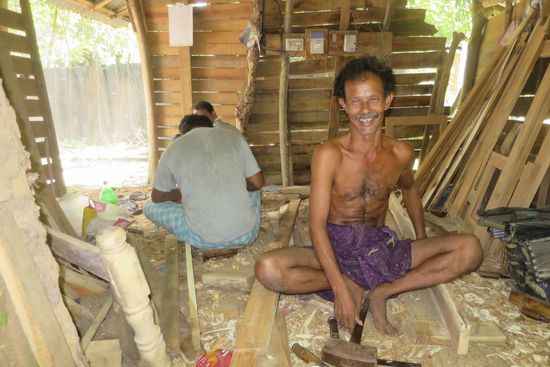 Beim Bummeln durch das Dorf finde ich die örtliche Schreinerei und da kann ich natürlich nicht dran vorbei gehen. Die Maschinenausrüstung ist mehr als bescheiden und das Lager mehr als chaotisch, aber Schlitz und Zapfen kann man auch in der Hocke mit Handwerkzeugen fertigen ( wenn man es denn kann).