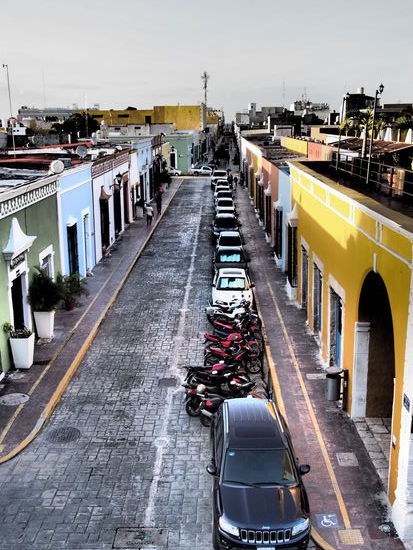 Es ist schon 21 Uhr, als wir in Campeche ankommen und wir haben noch keinen Schlafplatz. Wir suchen zunächst ein Eckchen auf, an dem es Wlan gibt. Während wir suchen, begegnen wir der Dame, die wir zuvor in Mérida kennengelernt haben. Die Welt ist eben nur ein Dorf. Wir klappern einige Hotels ab, die wir in bekannten Hotelsuch-Apps gefunden haben, sind aber unzufrieden, weil die Bilder meist nichts mit der Realität gemeinsam haben (zumindest ein Fenster im Raum wäre schön...). Erst ca. 2 Std. später finden wir ein Zimmer im Zentrum und freuen uns auf's Bett.