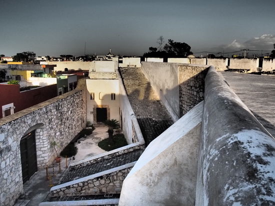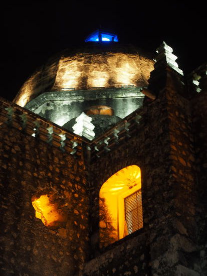 Als wir an einem der übriggebliebenen Teile der Stadtmauer ankommen, erfahren wir von dem Piratenansturm in 1663. Diesem hat die Stadt die wohl mit wichtigsten Sehenswürdigkeiten zu verdanken: die Stadtmauer und zahlreiche Bastionen. Dinge, die von dieser Zeit erzählen, finden sich überall...die Kanonen selbst sind auf der Stadtmauer ausgestellt (die wir für ein bisschen "Propina" - Trinkgeld - besichtigen dürfen)..von hier aus bietet sich eine wunderschöne Aussicht über die Altstadt. Wir sind viele Stunden unterwegs und kehren nach einem köstlichen Mittagessen im Hotel ein. Später am Abend wollen wir noch zum Plaza, da es hier jeden Freitag eine Lichtshow zur "Piratennacht" gibt. Zuvor möchten wir aber noch einige Bilder bei umdiewelt.de hochladen...stellen dabei allerdings fest, dass wir das Netbook im letzten Hotel vergessen haben - aaaah! Die nette Dame an der Rezeption ruft direkt im Hotel an und fragt, ob das Teil dort gefunden wurde. Wir haben Glück! Also geht es erstmal wieder zurück ins letzte Hotel, Netbook holen und dann ab auf die weihnachtlich geschmückte Plaza, um den letzten Abend in Campeche in vollen Zügen zu genießen.