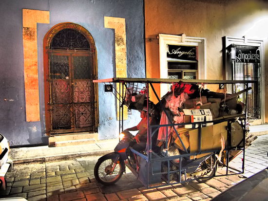Gegen 17 Uhr kommen wir endlich - ohne weitere Zwischenfälle - an und suchen das zuvor ausgesuchte Hotel in der Calle 58/59 auf. Wie schlecht es ist, wird uns leider erst auf den zweiten Blick bewusst (und den gibt es erst viel später). Denn zunächst sind wir immer noch ein wenig beeinflusst von der bescheidenen Fahrt hierher (also ist alles, was mehr als über 2 Sitzplätze verfügt und sich holprig bewegt, riesig), außerdem sind wir hungrig, müde und wollen - zuguterletzt - auch noch den Marktplatz aufsuchen, da es heute ein schönes Fest zum Andenken an die Geschichte Méridas entlang der Calle 60 gibt.