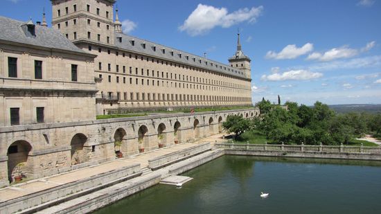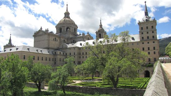 Ganz entspanntes Einchecken, Flug mit Air Berlin (viel Beinfreiheit), Übernahme des vorbestellten PKW bei Avis (dauert ein wenig), raus aus der Tiefgarage und Einstellen des Navis auf unser erstes Ziel: Real Sitio de San Lorenzo de El Escorial (Schloss- und Klosteranlage aus dem 16. Jhdt.).