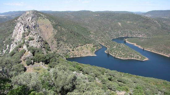 Zunächst geht es 40km nach Plasencia. Hier ist nur ein kurzer Rundgang angesagt, da nicht viel zu besichtigen ist. Dann Weiterfahrt in den Nationalpark Monfragüe durch weite grüne Flächen mit alten Korkeichen.