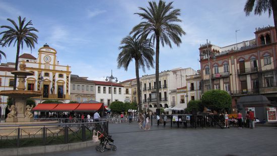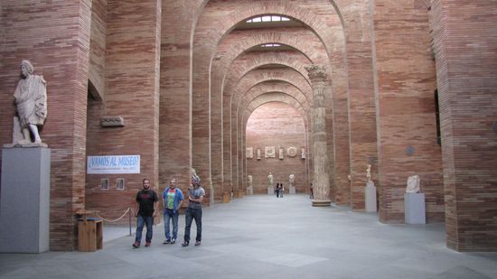 Beim Stadtrundgang besuchen wir auch das außergewöhnliche Museo nacional de Arte Romano. Die Architektur des Hauses nimmt den römischen Stil auf. Licht und Luft durchfluten den Bau. In und unter diesem Museum sind römische Artefakte (Straße, Haus- u. Tempelreste) integriert. Sehr besuchenswert und dazu noch kostenlos am Samstag nachmittag. Abends lassen wir den Tag gemütlich bei Tappas und Wein ausklingen.