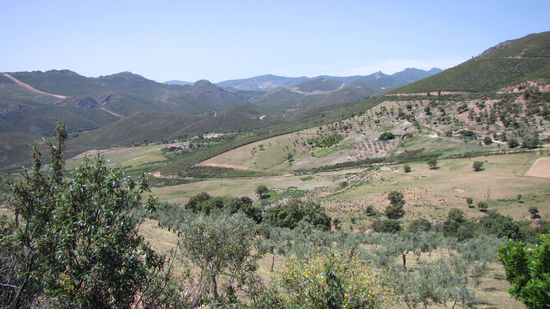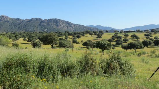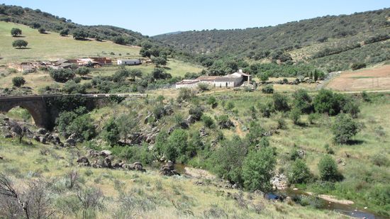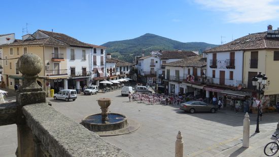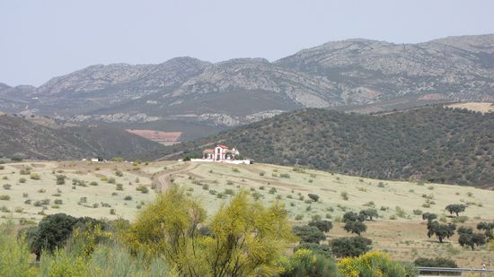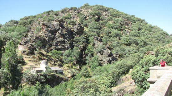 Dort über die Staumauer, oberhalb des nächsten Stausees entlang Richtung Bannos de Valde Caballeros. Über die EX116 dann ins „Gebirge“ nach Guadalupe. Eukalyptusbäume werden abgelöst von Korkeichen, Kastanien, Pappeln und Kiefern. Dazwischen viel grünes Buschwerk.