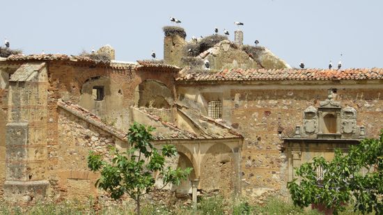 Schon vor dem Frühstück (gibt es erst ab 9 h) geht es zur Ermita del Humilladero, von wo man einen guten Blick auf das Monasterio haben soll. Die Bäume sind zu hoch. Auch wenn man den Hang weiter hinauf geht. Auf der Rückfahrt sehen wir dann einen Parkplatz neben der Straße mit tollem Blick auf Guadalupe. Nach dem Frühstück startet die heutige Tour nach Toledo.