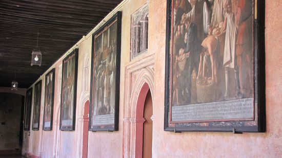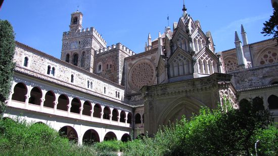In der Klosterkirche entdecken wir die berühmte „schwarze Madonna“. Interessanter für uns ist der alte Kreuzgang (1389-1412 erbaut) mit einem kleinen viereckigen Tempelchen in der Mitte. Den Innenhof erreichen wir durch die Hostellerie, die dem Monasterio angeschlossen ist.