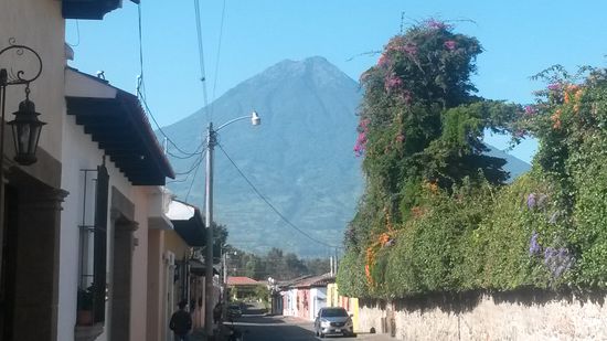 Zwei der Deutschen in Semuc haben mir bildhaft von einem aktiven Vulkan nahe Antigua vorgeschwärmt. Dort könnte man den inaktiven Nachbarvulkan "Acatenango" besteigen und sich dort, des nächstens bei einem Bier am Lagerfeuer Marshmallows grillend, das Schauspiel zu Gemüte führen. Das hatte mich sofort fasziniert und mit einem Mitreisenden aus Semuc habe ich gleich nach der Ankunft in Antigua eine entsprechende Tour für den nächsten Morgen gebucht. Weil wir erst kurz vor Ladenschluss in der Agentur aufschlugen, bekamen wir den ganzen Trip einschließlich Ausrüstung, Transport und (spärlicher) Verpflegung für um die 30 US.