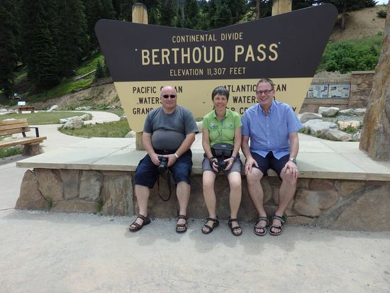 Die Straßen sind gut ausgebaut und man kommt zügig voran. Hoch oben auf 3446 m auf dem Berthoud Pass kamen wir an die Wasserscheide zwischen Pacifik und Atlantik. Hier oben pfiff ein ziemlich kalter Wind und so wurden die Fotos ein wenig schneller gemacht, damit wir wieder ins Auto kamen. Der Ausblick war wunderschön und wir gehen davon aus, dass wir auch morgen noch überwältigende Bilder sehen werden, wenn wir tiefer in die Rockies fahren werden.
