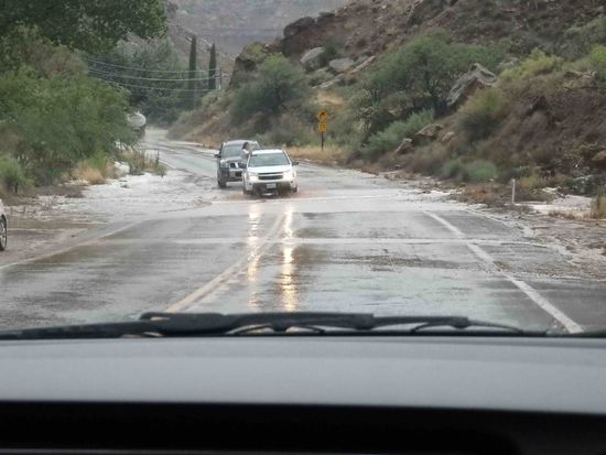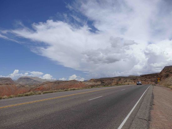 Ein kurzer Stopp bei McDonalds für Kaffee und/oder Softdrinks und dem schnellen Check von Mails und Whattsapp reichte als Pause aus. Wir näherten uns dem Zion Nationalpark und leider wurde der Himmel immer dunkler und verhieß nichts Gutes. Die ersten Blitze zuckten schon auf.