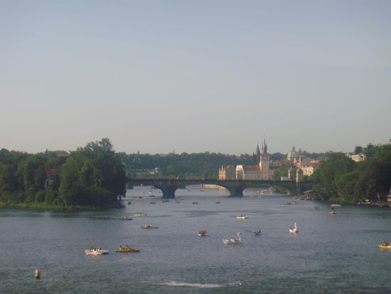 Da wir heute recht viel vor hatten (die goldene Stadt Prag an nur einem Tag zu besichtigen), brachen wir früh auf, kauften uns auf dem Campingplatz Metrotickets und fuhren problemlos in die City rein. Das Wetter war heute leider ziemlich wechselhaft, den ganzen Tag über bewölkt, ab und an tröpfelte es auch. In der Innenstadt angekommen steuerten wir (da es schon wieder am nieseln war) direkt einen Starbucksabklatsch an um in Ruhe zu frühstücken. Es gab fette Schoko-Kaffee-Drinks mit Sahne, gebackene Paninis mit Schinken und Käse und freies Wifi – ein schöner Start in den Tag also. Gestärkt machten wir uns dann an unseren Besichtigungsmarathon. Zuerst steuerten wir den Wenzelplatz mit der berühmten Statue des Heiligen Wenzels an. Dort konnten wir auch die Gedenktafeln für die Opfer des Prager Frühlings sehen. Anschließend schlenderten wir durch die Gassen von Prag, bestaunten alte Gebäude und schöne Kirchen und kamen an einen kleinen Markt, auf dem wir sehr schöne Bilder für unsere Küchenwände erstanden. Weiter ging es bis zum Altstädter Ring. Wir hatten wieder einmal Glück und kamen direkt zur stündlichen Vorstellung der astronomischen Uhr aus dem 15. Jahrhundert, die wir dann auch mit vielen anderen Touristen bestaunten. Anschließend besichtigten wir noch das Jan-Hus-Denkmal auf dem Platz und gingen dann in die wunderschöne Sankt Niklas Kirche, die Schönste die wir auf unserer Tschechienreise finden werden. Eine solch beeindruckende Kirche mit so schönen Deckenfresken hatten wir in unsrem Leben wirklich noch nicht gesehen! Auf unserem weiteren Weg zur Karlsbrücke besichtigten wir noch eine andere Kirche bevor wir über die Brücke zur Kleinseite liefen. Die Brücke war sehr voll und zwischen den ganzen Touris gab es lauter kleine Schmuck- oder Künstlerstände. Warum diese Brücke aber ein solches Highlight sein soll, hat sich uns nicht so ganz erschlossen, es war halt eine Fußgängerbrücke… Nach einer kleinen Stärkung in einem Café machten wir uns an den Aufstieg auf die Prager Burg, den Hradschin. Es galt immens viele Treppenstufen zu erklimmen, glücklicherweise gab es in der Mitte einen kleinen Stand, der Trdelnik verkaufte – eine Art gebackene Teigrollen mit Schokosoße – lecker! Das Glück war uns wieder hold und wir kamen genau zur Wachablösung am Eingang der Burg an. Schon beeindruckend, welcher Aufwand hierfür betrieben wird. Nachdem wir noch ein wenig durch das Gelände des Hradschin (dem größten geschlossenen Burgareal der ganzen Welt) geschlendert sind und die grandiose Aussicht auf Prag genossen hatten, ging es weiter in den St. Veits Dom. Dieser hat zwar eine wirklich beeindruckende Größe und schöne bunte Mosaikfenster, kann ansonsten jedoch mit der St. Niklas Kirche keinesfalls mithalten. Den Altar durfte man nur gegen Eintritt besichtigen, was wir uns jedoch sparten. Gemütlich machten wir uns danach auf den Rückweg zur Karlsbrücke, schauten uns mal in dieser Ecke und mal in jenem Geschäft um und hatten auf der Brücke diesmal das Glück, die bronzene Figur des stürzenden, heiligen Nepomuks berühren zu können, was angeblich Glück bringen soll. Wieder in der Altstadt angekommen gönnten wir uns bei T.G.I. Friday´s noch einen Cocktail bevor wir uns (pünktlich zum einsetzenden Nieselregen) auf den Rückweg zu unserem Campingplatz machten. Unser Fazit von Prag ist recht neutral. Die vielen alten Bauten und Kirchen sind schon sehr schön anzusehen, allerdings würde ein bisschen mehr Moderne der Stadt auch nicht schaden. Wir empfanden es auch nicht als absolutes Shopping- oder Ausgehparadies. Schöne Stadt, aber keinesfalls mit Perlen wie Paris oder München zu vergleichen. Am Abend aßen wir aufgrund des starken Regens in dem Restaurant auf unserem Campingplatz was zwar ganz lecker, allerdings absolut nicht tschechisch war. Danach saßen wir noch eine ganze Weile bei Wein und Rum unter der Markise vor unserem Jolly und quatschten.