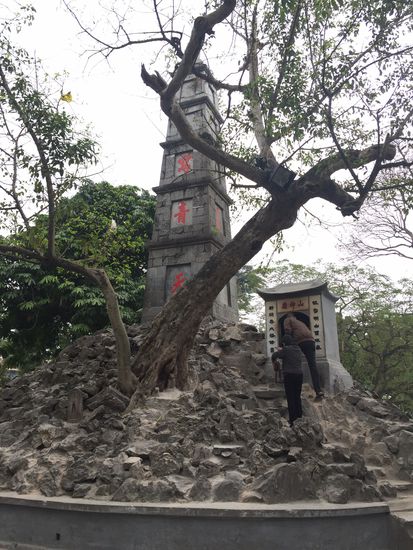 Anschließend machten wir uns dann auf ein bisschen was von der Stadt zu sehen, wir hatten ja nur einen halben Tag Zeit, deswegen konnten wir leider nicht sehr viel sehen. In Hanoi war es nicht besonders warm, deswegen mussten wir erstmal unsere langen Sachen suchen, immerhin hat es nicht geregnet. Wir sind erstmal durch die kleinen Gassen zum Hoan-Kiem-See gelaufen. Dort sind wir auf die kleine Insel gegangen und haben dann einen Spaziergang um den See rum gemacht. Wir waren allerding so kaputt, von dem sehr frühen aufstehen die letzten Tage, dass wir uns dazu entschieden haben uns noch eine Stunde massieren zu lassen und uns dann den Nachtmarkt anzusehen.