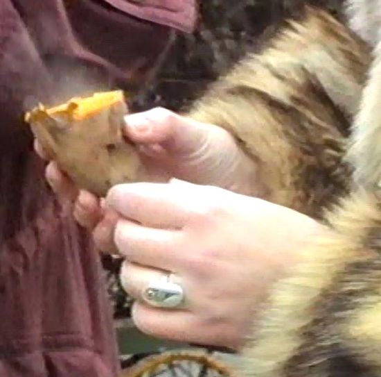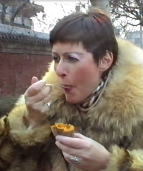 Dort kann ich auch die Geld-Seilbahn filmen. Marlene bekommt ein ganzes Pelztier - für den Hals gedacht, aber Marlene benutzt es vornehmlich als Kopfband.