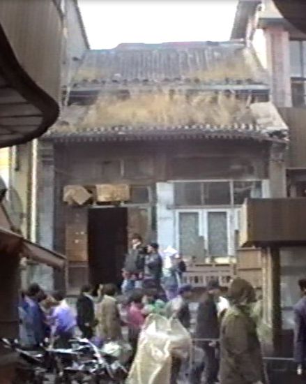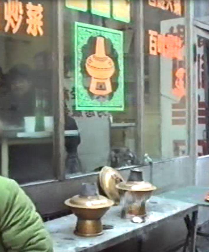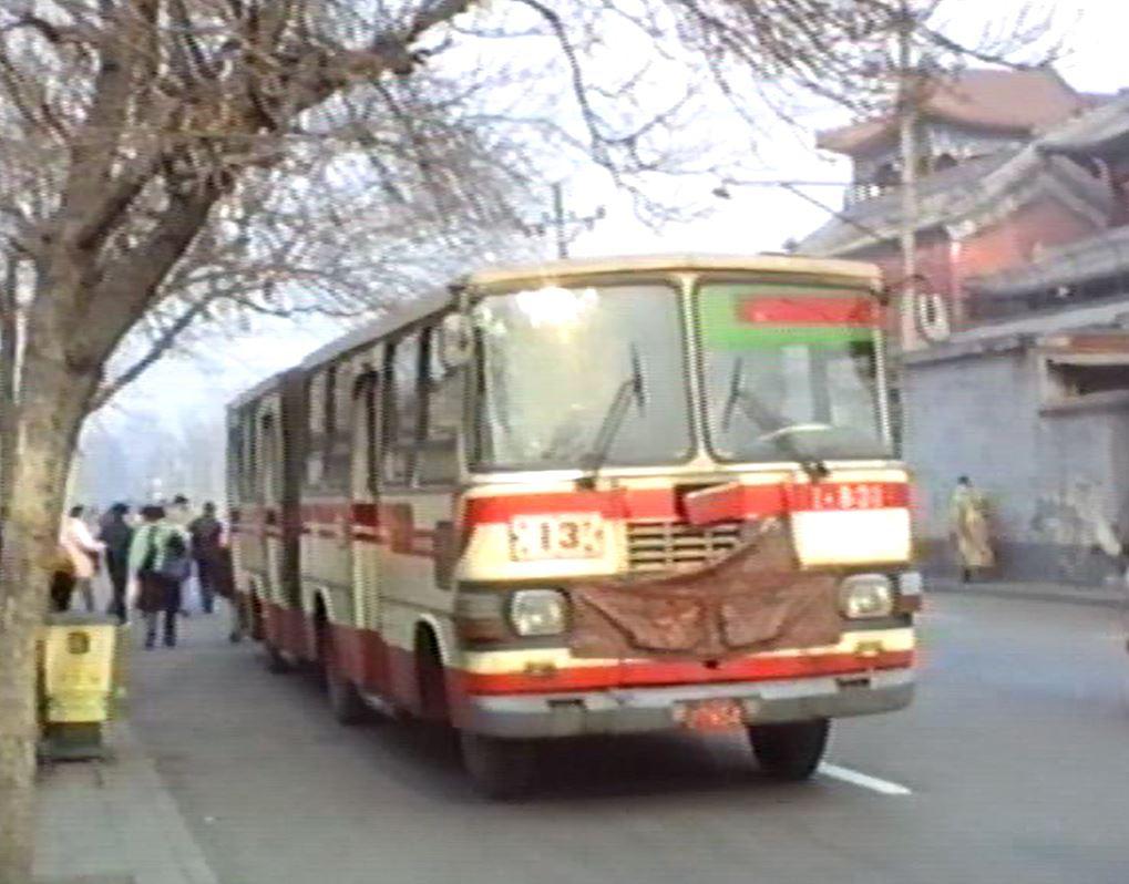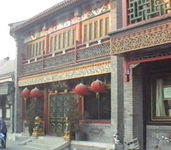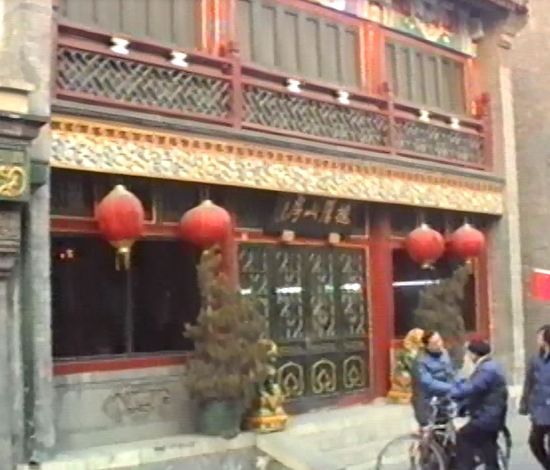 Die Damen werden dann von Falko umgehend in ein Restaurant zum Teetrinken geschickt, wir suchen Geldwechselstellen. Zwei haben kein Geld mehr, nach weiterem Fragen finden wir eine Zweigstelle der Bank of China. Dort werden sehr ausführlich von vier Bankern Traveller-Schecks in Foreign Exchange Currency gewechselt. Dann wird überlegt, ob die drei Damen schon ins Hotel fahren sollen, zum guten Schluß aber laufen alle mit und holen Holzkasten und Uhr. Wir finden noch eine schöne alte Schattenfigur. Mit zwei Taxen zurück ins Hotel, im Eiltempo mit unterschiedlichen Tischbesetzungen wird ein Buffet geschlappt (Mausi ist es schlecht vom Blätterteig mit Schnaps) und um 18.30 Uhr geht es ab in die Peking-Oper.