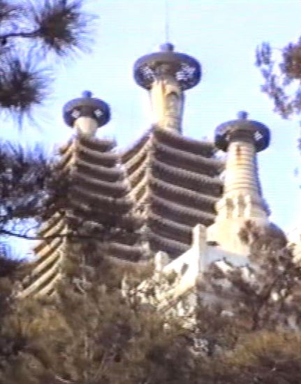 Weiter den Hügel hinauf überragt die Diamantthronpagode (Jingang baozuo) den Tempel. Sie erinnert an einen Stupa in Bodh Gaya in Indien, wo Siddharta Gautama, der historische Buddha, ins Nirwana einging. Die massive quadratische Plattform ist vollständig mit Buddhareliefs ausgeschmückt. Von ihr erheben sich vier kleinere und eine große Pagode, die ebenfalls mit Buddhareliefs geschmückt sind. Im Sockel der Pagode soll das Gewand Sun Yatsens eingemauert sein. Von der Plattform hat man einen herrlichen Blick über die Abhänge der Westberge.