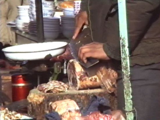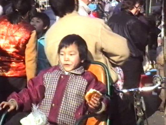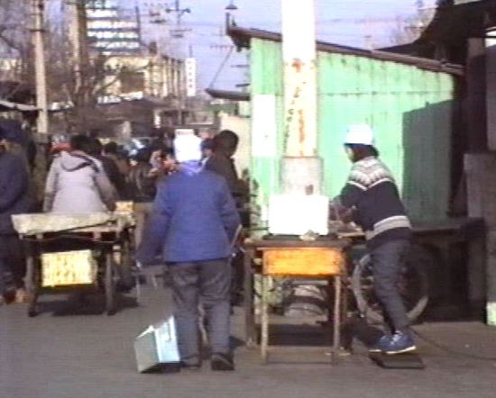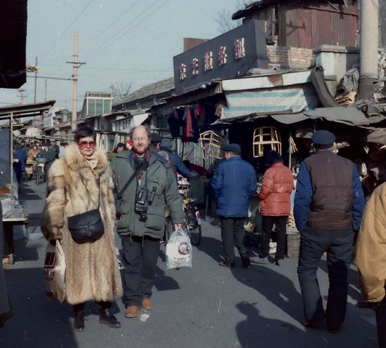 An der nächsten Kreuzung halten wir aus Sparsamkeitsgründen wieder ein Minitaxi an und fahren für 10 Yuan zum Friendship-Store, wo wir mit F. und M. verabredet sind, aber auf Anhieb U. und I. treffen, mit denen wir dann zunächst ein Bier trinken. Nach einer halben Stunde zum verabredeten Zeitpunkt (14.00/14.30/15.00) sind auch die beiden da und alle Sparsamkeit ist vergessen! Nach ausgiebigem Einkauf fahren wir bepackt wie die Maulesel mit zwei Taxen wieder ins Hotel zurück. K. hat wieder die voluminösten Einkäufe gemacht; wie will der das alles wegschaffen? Um 17.00 Uhr haben wir dann noch etwas Zeit zum Packen. Danach geht es dann wieder ins Programm mit Akrobatik - live ist sie ganz toll. Um 21.30 Uhr ist M., die heute morgen schon anfing zu kränkeln, geschafft und muß ins Bett. F. betreut sie und wir vier gehen in die Hongkong-Food-City zum Entenessen. Es ist zwar keine Peking-Ente, aber die beiden Zubereitungsarten 'Ente mit Gemüse' und 'frittierte Ente mit Zitronen-Sauce' sind sehr schmackhaft. Da wir allerdings erst um 21.30 Uhr das Lokal betreten, sitzen wir zeitweise alleine da und das ist nun doch nicht so gemütlich. Da F. gestern Nacht (oder besser heute morgen) sich konstant geweigert hatte aus unerfindlichen Gründen, den beiden Stuttgartern ihren Anteil am gestrigen Essen zu nennen, müssen wir jetzt - obwohl todmüde - uns noch in der Lobby einen Drink genehmigen und mit U. und I. treffen. Wir trinken noch einen Whisky und Ulrike geht schon aufs Zimmer und ich rechne noch mit dem Hotel ab. Oben angekommen, ist Ulrike schon eingeschlafen und erst nach mehrmaligem Klopfen zum Öffnen des Zimmers bereit.