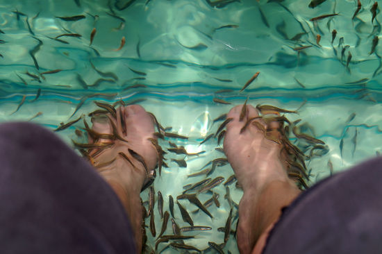 Ganz in der Nähe des Tempels ist auch der schwimmende Markt von Ayutthaya. Dort bekommt man jedes erdenkliche Souvenir - auch Buddhas, die man ja eigentlich nicht kaufen soll. Bei der Passkontrolle in Bangkok sieht man auch überall Hinweisschilder die davor warnen, dass man Buddhas kaufen der sich tätowieren lassen soll (Uuppps - mein Rücken wird in diesem Urlaub nicht entblöst ! Auf diesem Markt haben wir unsere Füße durch "Doctor fishes" verwöhnen lassen. Die kleinen Fischchen knappern abgestorbene Haut von den Füßen. Im ersten Moment war es sehr kitzlig, aber danach war es nur noch fein!