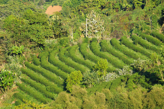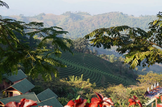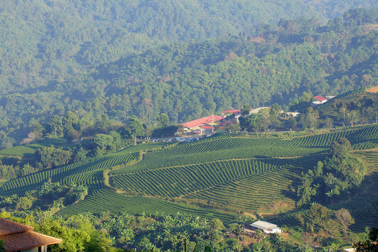 Auf der Rückfahrt nach Chang Rai haben wir einen Umweg nach Mae Salong gemacht. Mae Salong wurde von Kuomintang Chinesen gegründet. Bis 1980 herrschte dort der Opiumanbau vor, bis der Rebellenführer Khun Sa 1982 vertrieben wurde. Heute lebt die Gegend vom Tee- und Kaffeeanbau.