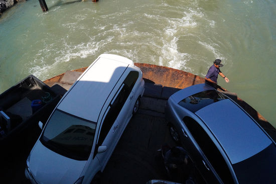 Vor zwei Tagen haben wir uns also auf den Weg nach Koh Chang gemacht. Wir wollten den Jahreswechsel auf einer der thailändischen Inseln verbringen. Jetzt ist auch der richtige Zeitpunkt, die Eindrücke der letzten Tage Revue passieren zu lassen und uns auf den Großstadt-Dschungel Bangkok vor zu bereiten. Nach einem ausgiebigen Frühstück (und immer noch wurden wir mit Weihnachtsmusik beglückt, das ist sogar für mich - bekannt als großer Weihnachtsfan - zu viel), haben wir die ca. 70 Kilometer bis zum Fährhafen bald hinter uns gebracht. Um 280,00 Baht (ca. EUR 7,00) hat man die Möglichkeit, mit einer Autofähre in ca. 30 Minuten nach Koh Chang über zu setzen. Die Hoffnung bei uns war groß, dass wir nicht das letzte Auto sind, welches sie auf die Fähre lassen - siehe Foto