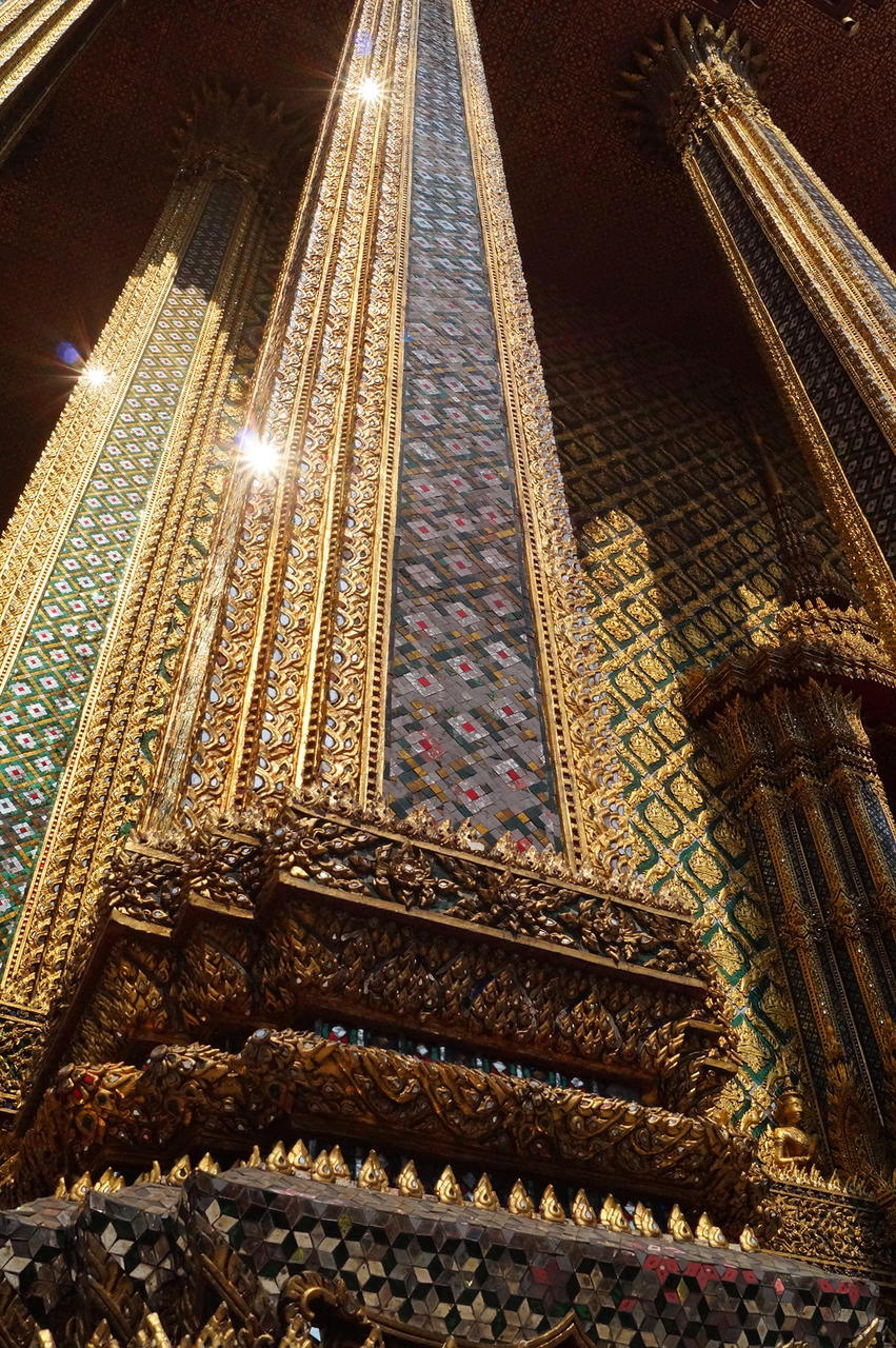 Wir haben dann doch einen gefunden, der uns auf direktem Weg zum Wat Pho gebracht hat. Dieser Tempel liegt unmittelbar neben dem Königspalast und beherbergt den 46 Meter langen und 15 Meter hohen, liegenden Buddha. So wie er da liegt soll es Buddha darstellen, wie er ins Nirvana hinübergeht.