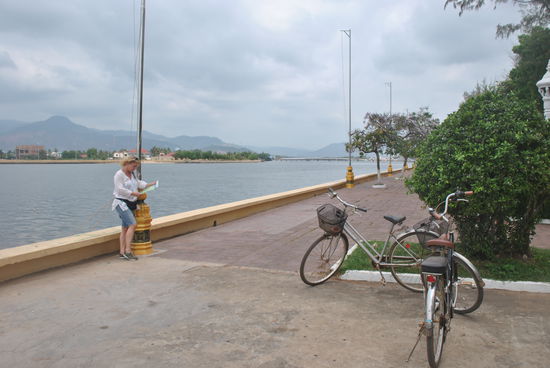 Heute ist es bewölkt, somit nicht ganz so heiß und wir beschließen, uns Fahrräder zu mieten und nach Kampot zu fahren - ca. 4-5 km.