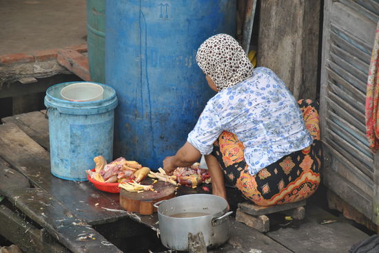 Wir fahren zum Markt. Dort kann man Fahrräder für wenige Riel parken. Wir haben sogar ein Schloss für die alten Dinger dabei. Der Markt ist eng und nicht so übersichtlich sortiert wie der große Markt in PP. Aber auch hier ist ALLES zu bekommen.