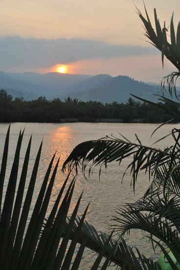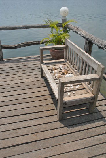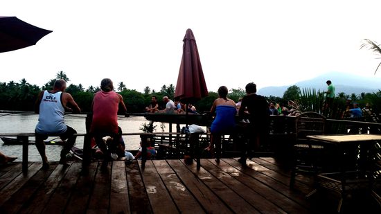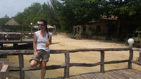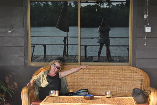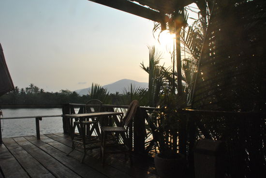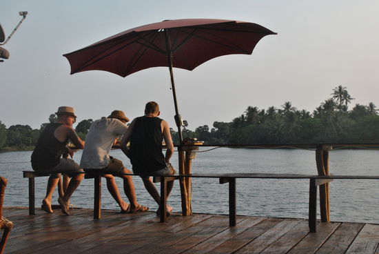 Dann wieder raus in die Gluthitze. Aber nicht ganz zurück - wir machen einen Stopp bei den NATURAL BUNGALOWS. Eine hübsche Anlage, kurz hinter der Brücke direkt am Fluss. Hier gibt es nette und gemütliche Sitzgelegenheiten im Schatten mit Ventilatoren, Strom und natürlich free WiFi, aber das ist hier überall Usus. Wir sind - wieder einmal - allein.