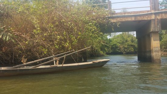 Wir sind fast immer allein. Ab und an sehen wir ein paar Kinder beim Baden, die immer begeistert "hello" rufen und winken. Bis dahin ganz nett, aber auf einmal befinden wir uns in einer Horde von ca. 15 Jungs, die sich dann am Boot auch festhielten, wir konnten kaum noch paddeln, weil wir Bedenken hatten, ihnen die Paddel auf den Kopf zu hauen. Und da wir die Sprache auch nicht verstehen, können wir nicht richtig einordnen, was die Jungs vorhaben - einfach nur Spaß beim Durchtauchen unter dem Boot oder alte Touristinnen erschrecken.