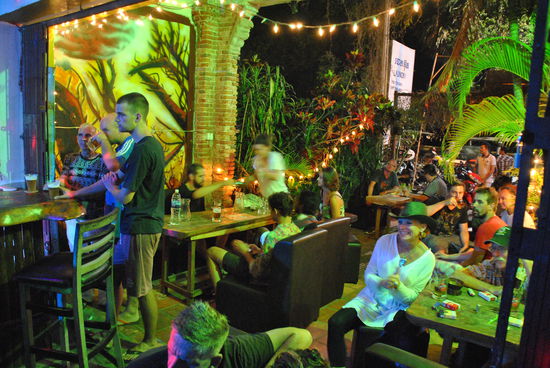 Abends nimmt Yan, unsere Gastgeberin von Champa Lodge uns mit in die Stadt in eine Kneipe, wo es heute LIVE-Musik gibt.