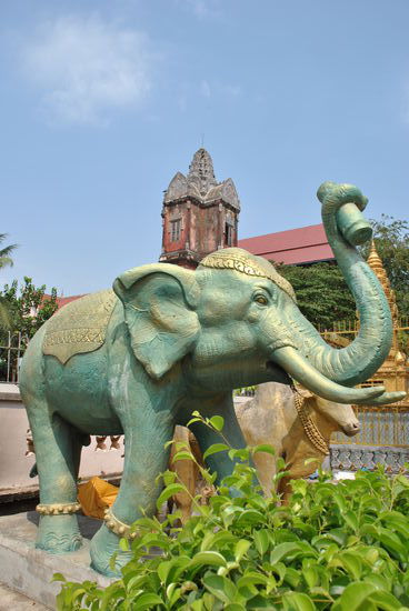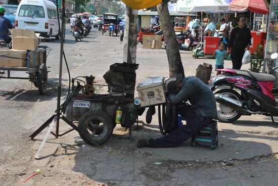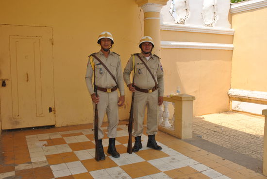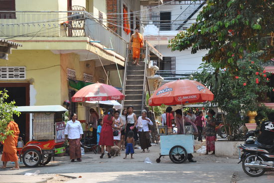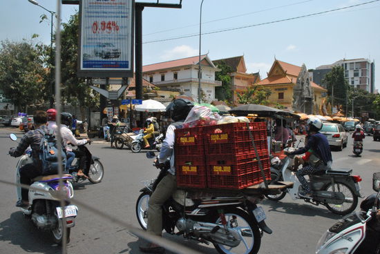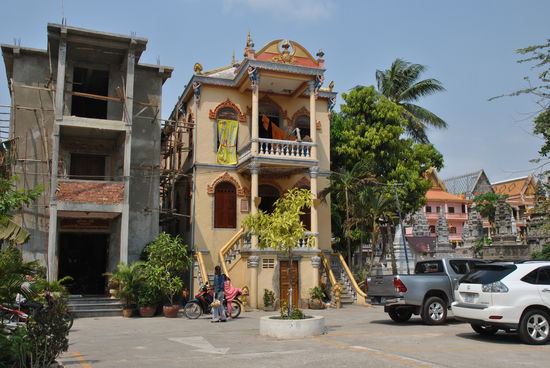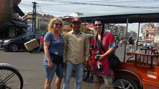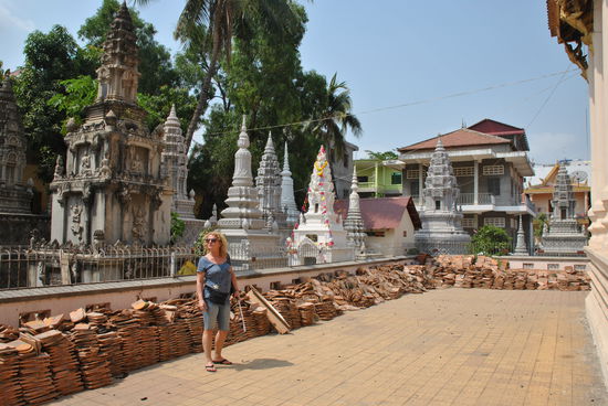Lee wartet draußen auf uns und weiter geht es: einige Sehenswürdigkeiten reichen uns im "Vorbeifahren" - und immer wenn wir ein paar Fotos aus dem Stand machen wollen, hält er dafür an. So passieren und fotografieren wir Independence Monument, Königspalast, Silberpagode, Nationalmuseum u.a. An vielen Stellen wird gebaut. Die Chinesen investieren viel in Luxushotels. Wir können uns nicht vorstellen, wie das z. B. hinsichtlich Infrastruktur und Abwässern zu bewältigen sein wird. In ein paar Jahren wird wohl auch Phnom Penh über eine Skyline verfügen. Trauriger Begleitumstand: die Schere zwischen ARM und REICH klafft immer mehr (erzählt uns auch Lee).