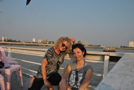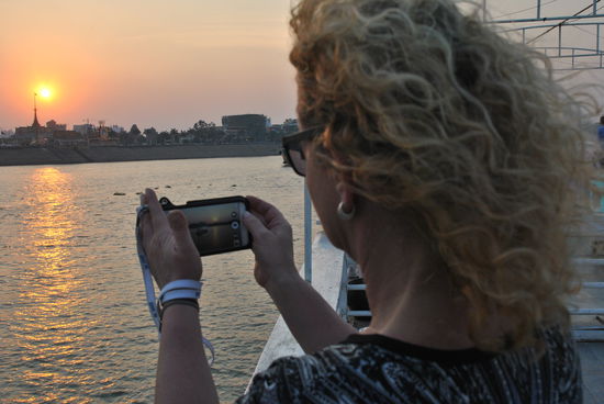 Dann machen wir einen Zwischenstopp im Hotel am Pool bevor wir erneut Richtung Fluss aufbrechen: Sunset cruise zwischen Tonle Sap und Mekong: 1 Std. für 5 USD / Pers.