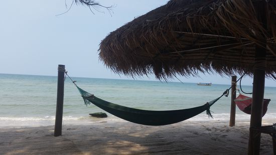 Hier ist es so gemütlich, es gibt so viele gemütlichen Ecken mit Palmen, Liegen, Hängematten etc., so viele schöne Ausblicke, dass wir einen Tag einlegen, an dem wir uns nur zwischen Zimmer und Strand bewegen.