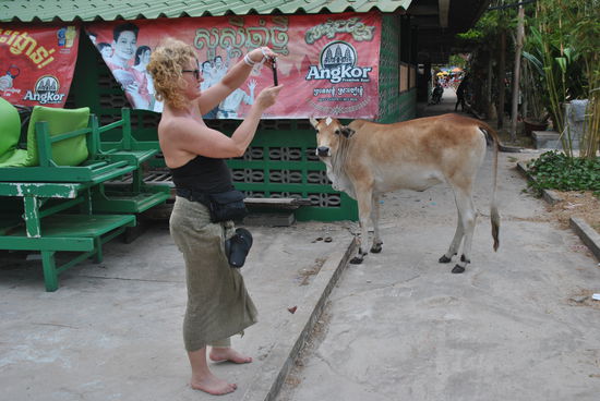 Eine der Kambodschanerinnen, Dany, spricht relativ verständlich Englisch und so führen wir "Frauengespräche" über die Sitten und Gebräuche in Kambodscha und in Deutschland. Das geht von der Krankenversicherung und den Kosten beim Arzt bis zu der Tatsache, dass die Damen Männer mit Bart nicht mögen, weil das beim küssen stört: "I don't want to kiss a monkey". Na ja, da haben sie ja kein Problem, ich habe noch keinen Kambodschaner mit Bart gesehen.