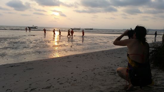 Am Spätnachmittag machen wir uns doch noch mal auf, um uns ein wenig zu bewegen: wir brauchen nur über einen Hügel laufen und auf der anderen Seite beginnt Otres Beach. Hier "tickt" die Welt anders: das Publikum ist im Durchschnitt jung... Gaby bemerkt irgendwann: "wir machen hier gerade einen Seniorenspaziergang, oder?!"