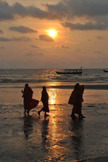 Und zum Sonnenuntergang erscheint auch eine Gruppe Mönche, die uns natürlich ganz besondere Foto-Motive liefert.