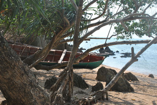 Gaby und ich laufen ca. 20 Minuten zur Spitze der Insel. Wie überall lassen sich auch hier viele schöne Foto-Motive finden. Das Wasser ist flach, "pippiwarm". Das Hinterland ist "Urwald" - uns fehlten Zeit und Schuhwerk, um das zu erkunden.