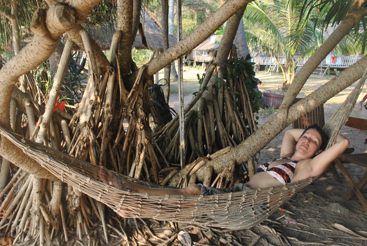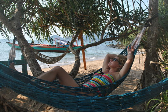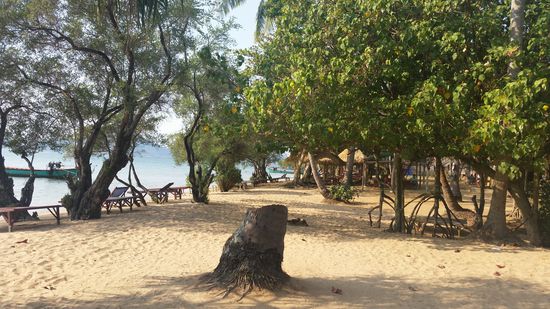 Es gibt hier einen Strandabschnitt, an dem alle Boote landen und ein paar Restaurants mit günstigen Preisen und jede Menge Sitzgelegenheiten, Liegen, Hängematten im Schatten sind.