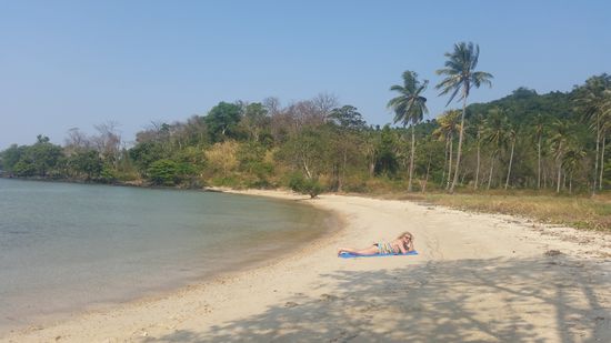 Nachdem wir morgen die Küste verlassen und die restlichen Tage am Flussufer verbringen werden, entscheiden wir uns, einen Boots-Ausflug nach Rabbit Island (Koh Tonsay) zu machen. Für 8 USD werden wir von der Unterkunft per Tuk-Tuk abgeholt, mit Boot übergesetzt und auf dem Rückweg auch wieder mit Tuk-Tuk zurück gefahren.