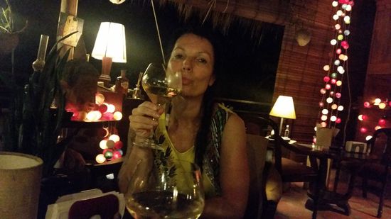 Nach dem Abendessen hören wir noch Musik aus der Bar des Nachbarhotels und beschließen, hier einen Abschiedsdrink zu nehmen. Das Hotel "Le Ponton" scheint ein wenig exklusiver zu sein (was sich an der Preisliste manifestiert), aber ein Glas Weißwein in einem sehr hübschen Ambiente, ist o.k. Wir haben noch eine nette Unterhaltung mit ein paar Franzosen, ziehen es aus "finanziellen Gründen" jedoch vor, die Party abzubrechen, bevor es dann doch unerquicklich teuer wird und verabschieden uns.