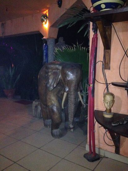 François berichtete unterwegs übrigens von dem Wüstenwind Harmattan, üder bis hier hinunter an die Küsten wirkt. Dadurch seien die Tage sehr heiß und die Nächte kühlt. Von letzterem merke ich noch nichts, jetzt, da es hier 22:15 Uhr ist. Doch so erklärt sich auch die unterwegs erlebte schlechte Sicht.